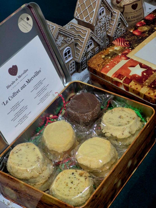 Offrez ou offrez-vous un moment de pur bonheur avec notre coffret gourmand, une invitation à la gourmandise et à la découverte des saveurs authentiques. Ce trésor culinaire renferme une sélection exquise de sablés artisanaux, à la fois croquants à l’extérieur et fondants en bouche, pour un équilibre parfait entre texture et douceur.